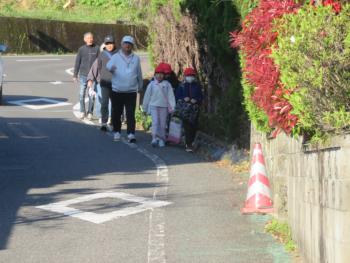 ○登校班で登校の様子です。1列になり交通安全に気をつけて登校していました。地域の方も見守りのために一緒に登校してくださいました。ありがたいです。