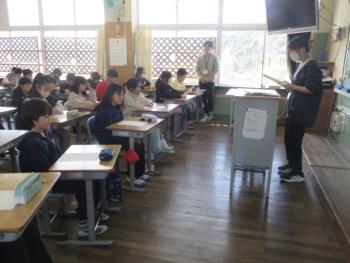 ○6年生は、明日行われる入学式に向けての打ち合わせをしました。「入学式の準備は、私たちに任せてください。」
