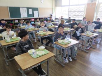 ○今年度初めての給食はちゃんぽんでした。具だくさんのちゃんぽんを、おいしくいただきました。