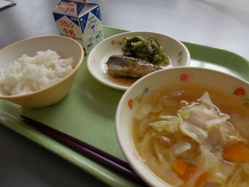 9/4(水)今日の給食 牛乳 ごはん 野菜わん いわしみぞれ煮 ごま酢あえ